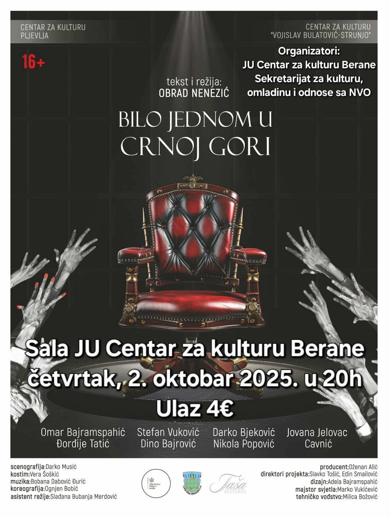 Позоришна представа „Било једном у Црној Гори“, настала по тексту и у режији Обрада Ненезића, а у продукцији ЈУ Центар за културу Пљевља и Центра за културу „Војислав Булатовић-Струњо“ биће одиграна у петак 27....