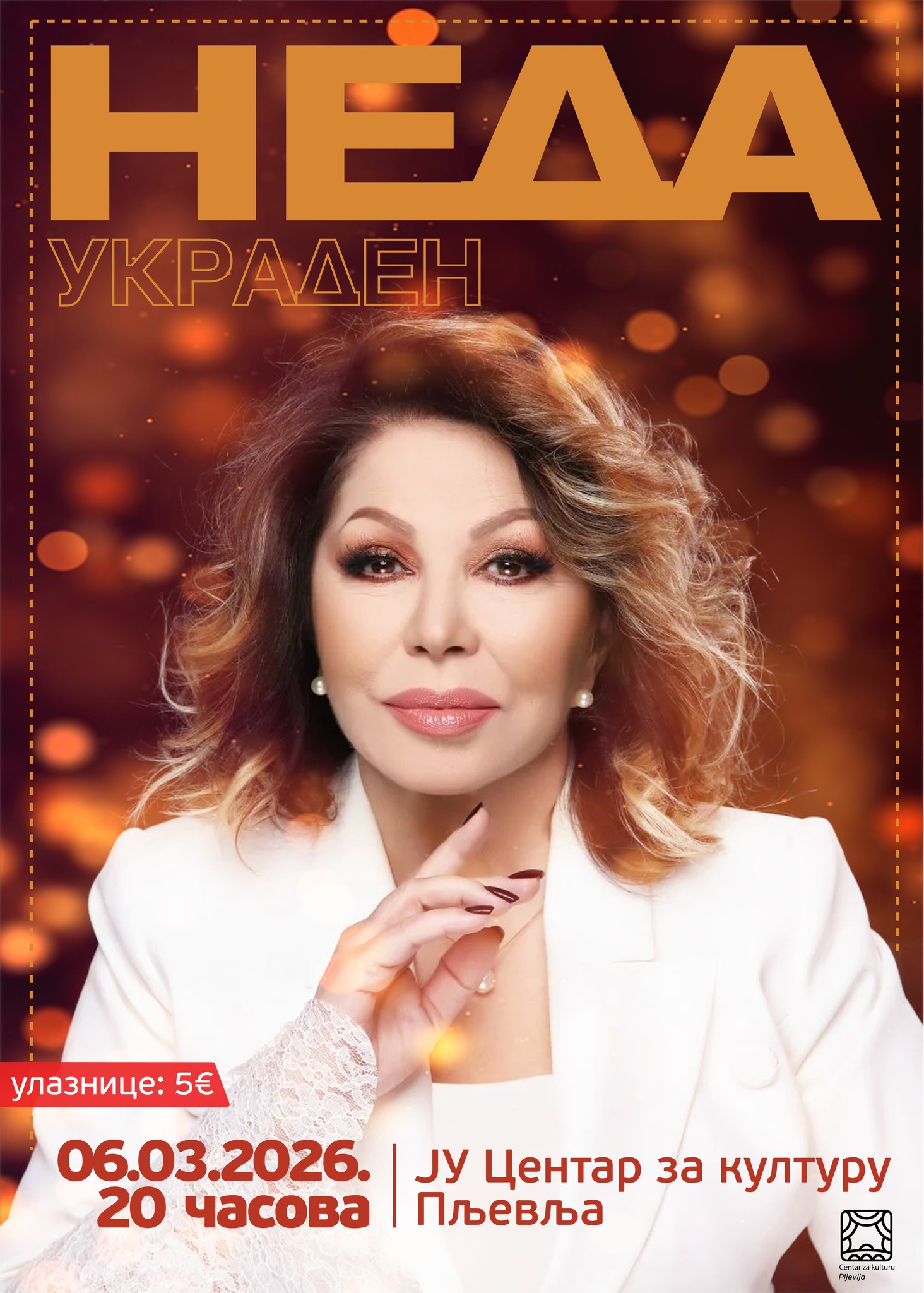 Поштовани суграђани, задовољство нам је да најавимо да ЈУ Центар за културу Пљевља, у сусрет 8. марту Међународном дану жена организује концерт реномиране естрадне умјетнице Неде Украден. Концерт ће бити одржан у петак 6....